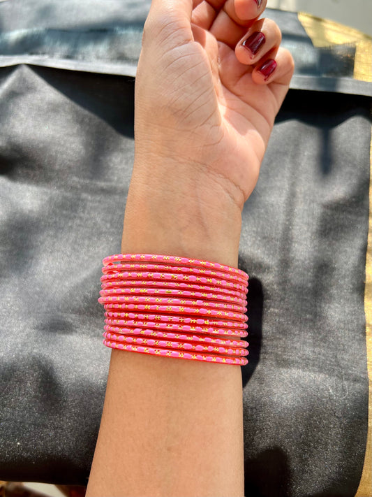 Pink Design Kuppivala / Glass Bangles (Pack of 12)