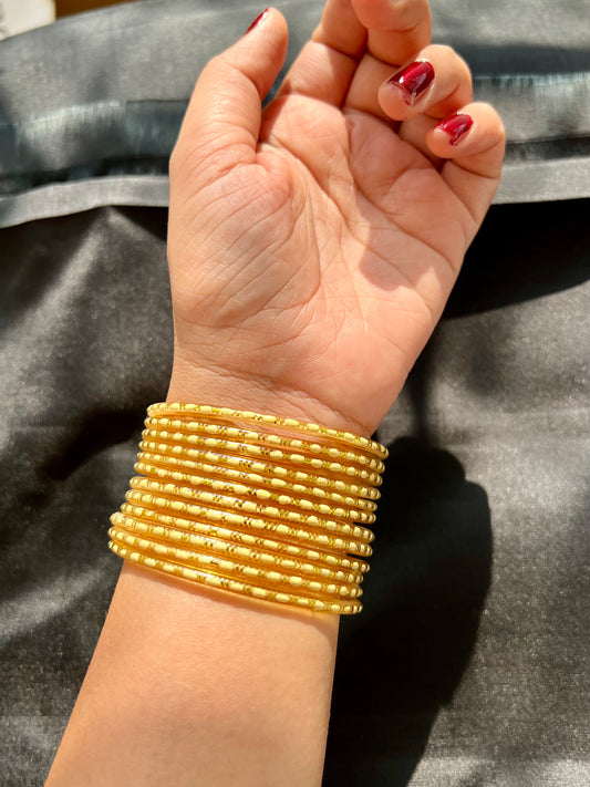 Yellow Design Kuppivala / Glass Bangles (Pack of 12)