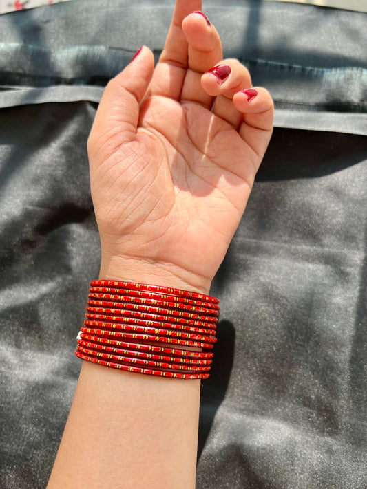 Maroon Design Kuppivala / Glass Bangles (Pack of 6)