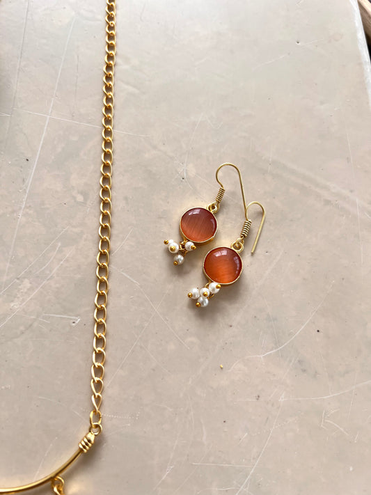 Gold Plated Stone Necklace with Earring