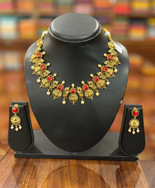 Premium Antique Temple Necklace with Earring Set