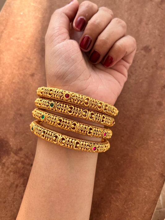 Antique Bangle Set Ruby And Emerald (Set of 4)