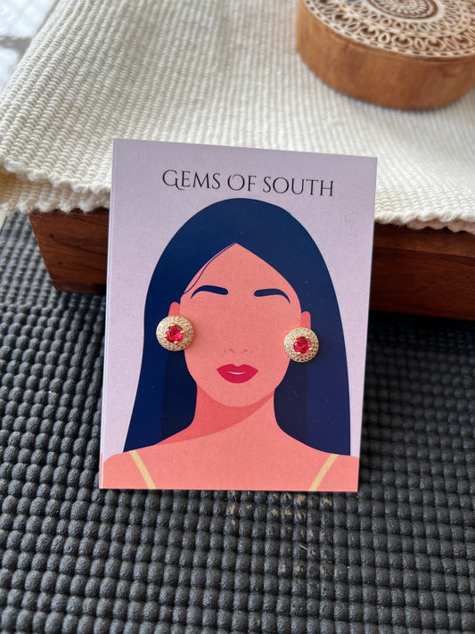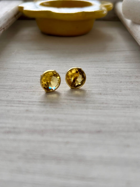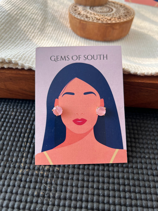 Glossy Stone Round Stud Earring